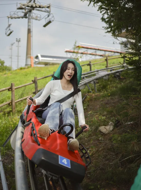 Ride a 1-person roller coaster through cool mountain air at 970 m elevation. Smooth dual-rail design, colorful night lights (select days), and lift-up panoramic views—perfect for families, friends, and creators.